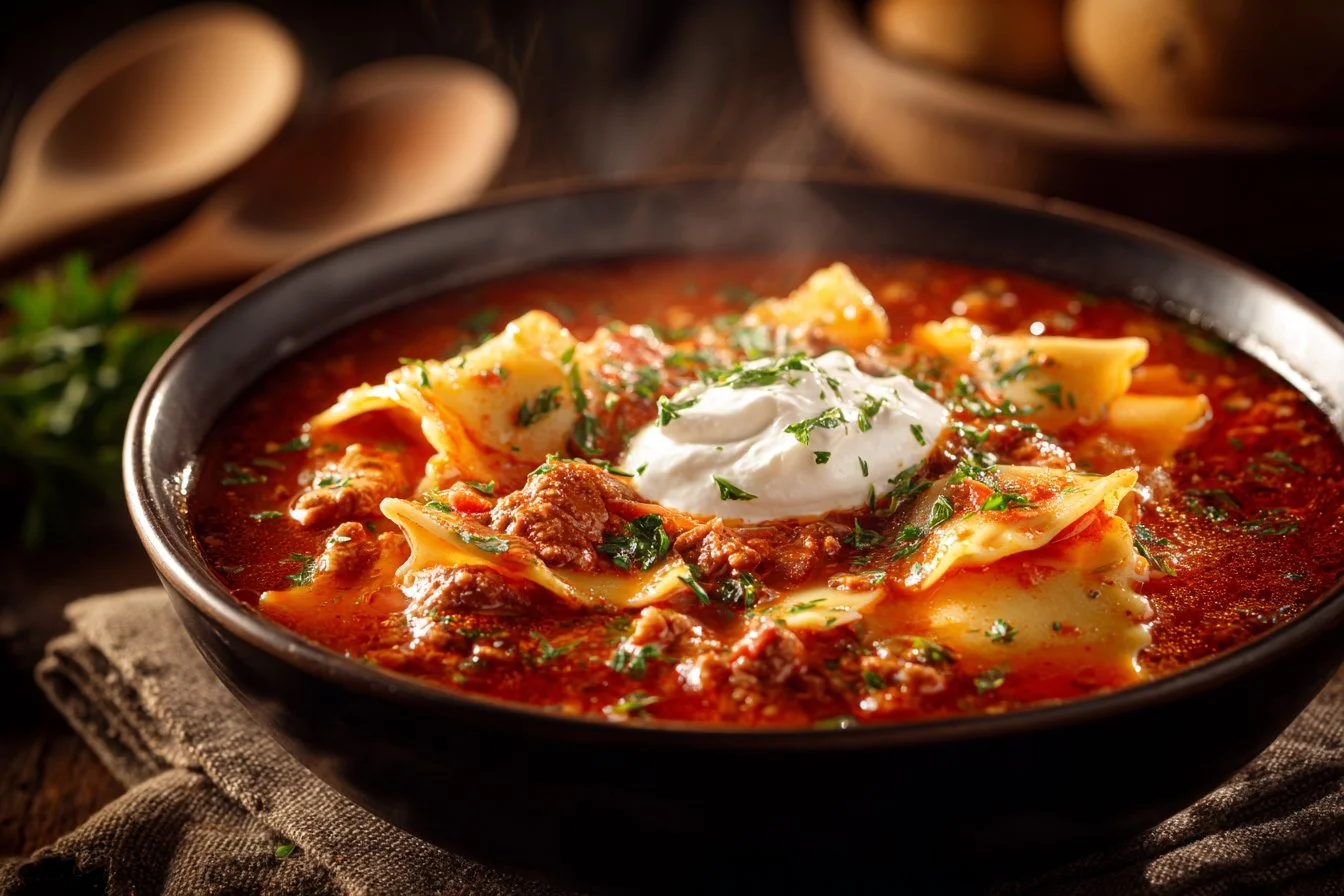 A comforting bowl of hearty lasagna soup that captures all the beloved flavors of traditional lasagna in a warm, cozy dish.