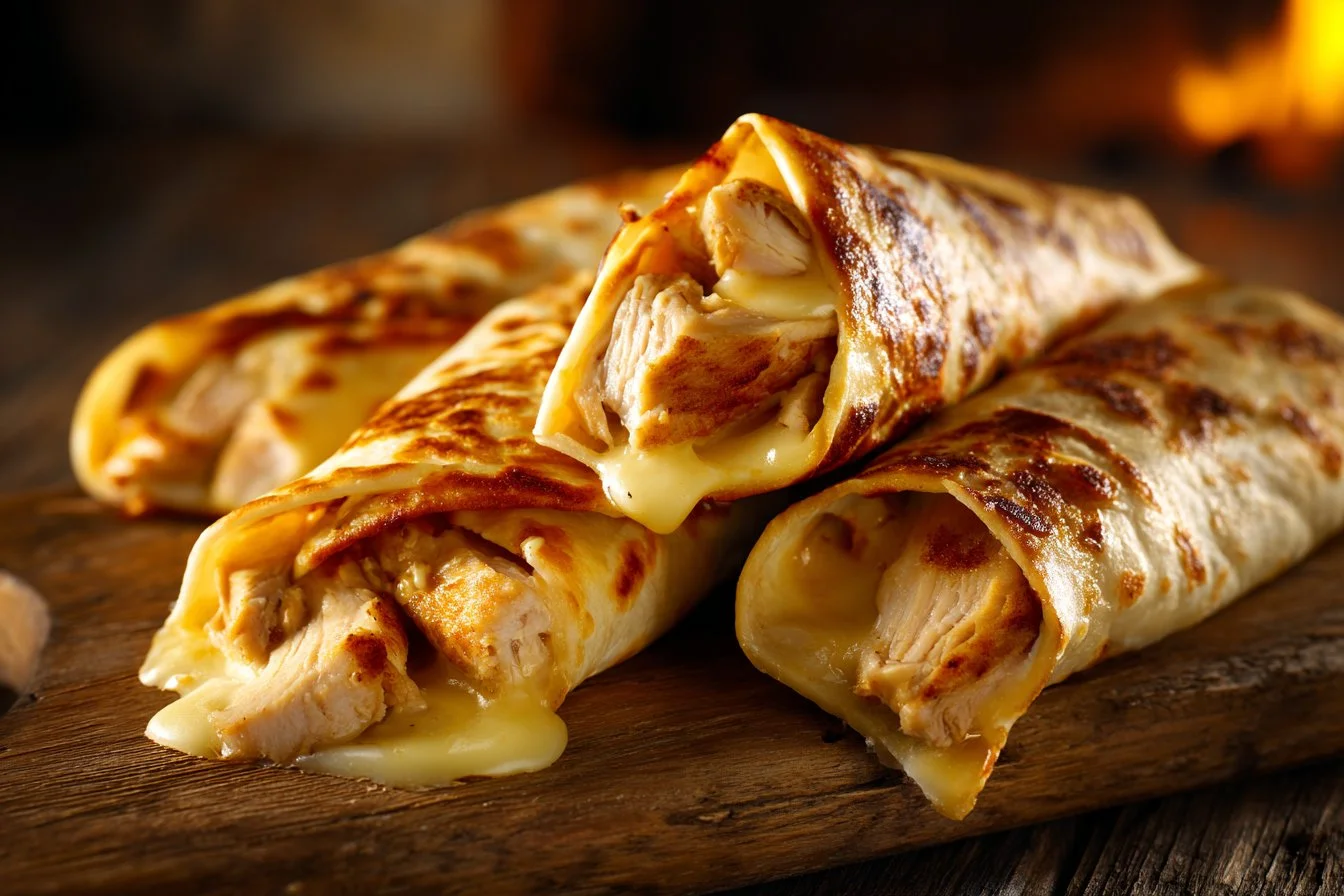 Delicious and quick Cheesy Chicken Garlic Wraps, perfect for busy weeknights with seasoned chicken, melted cheese, and creamy garlic sauce.