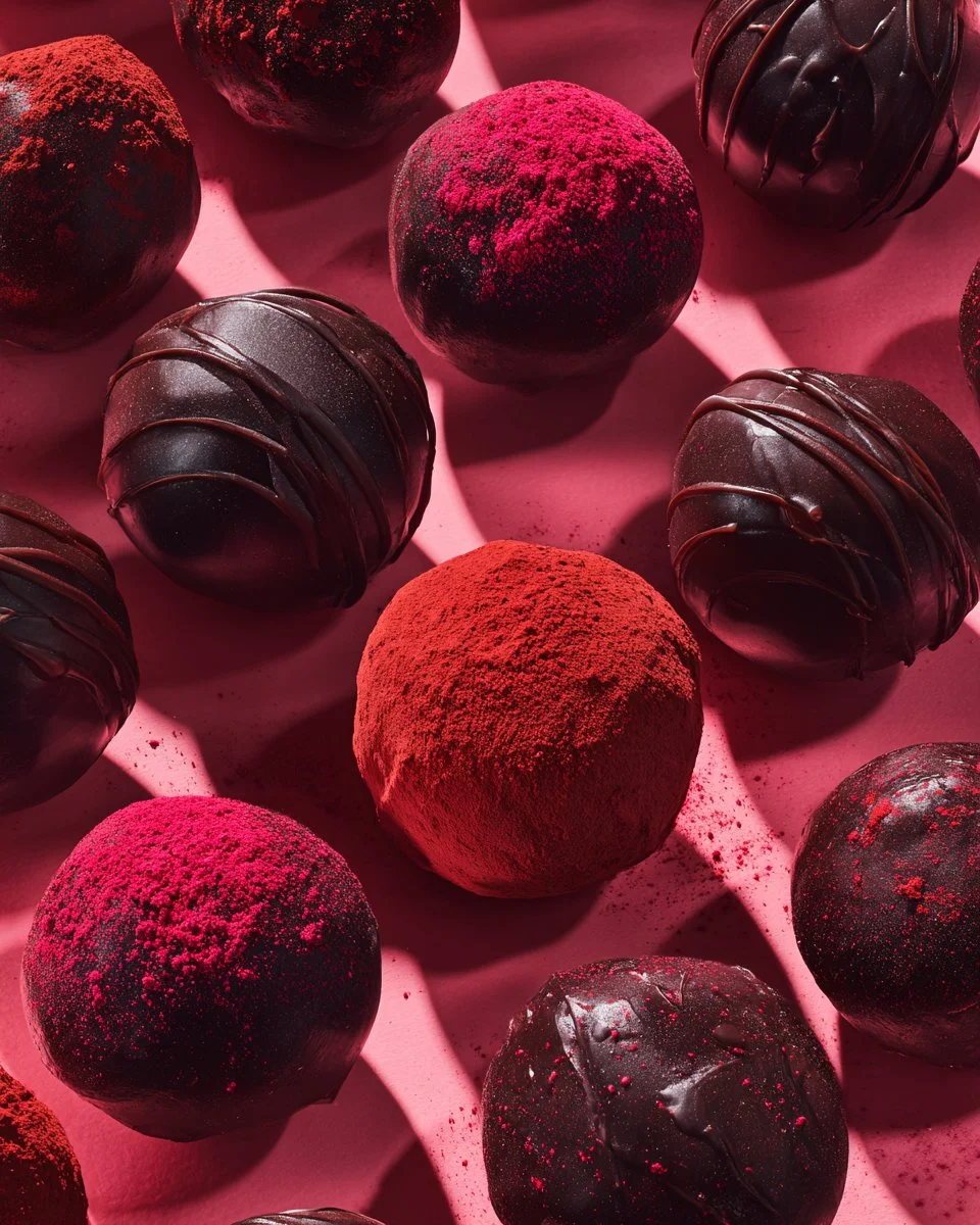 Delightful chocolate truffles with a rich chocolate and tart raspberry blend, perfect for special occasions or sweet cravings.