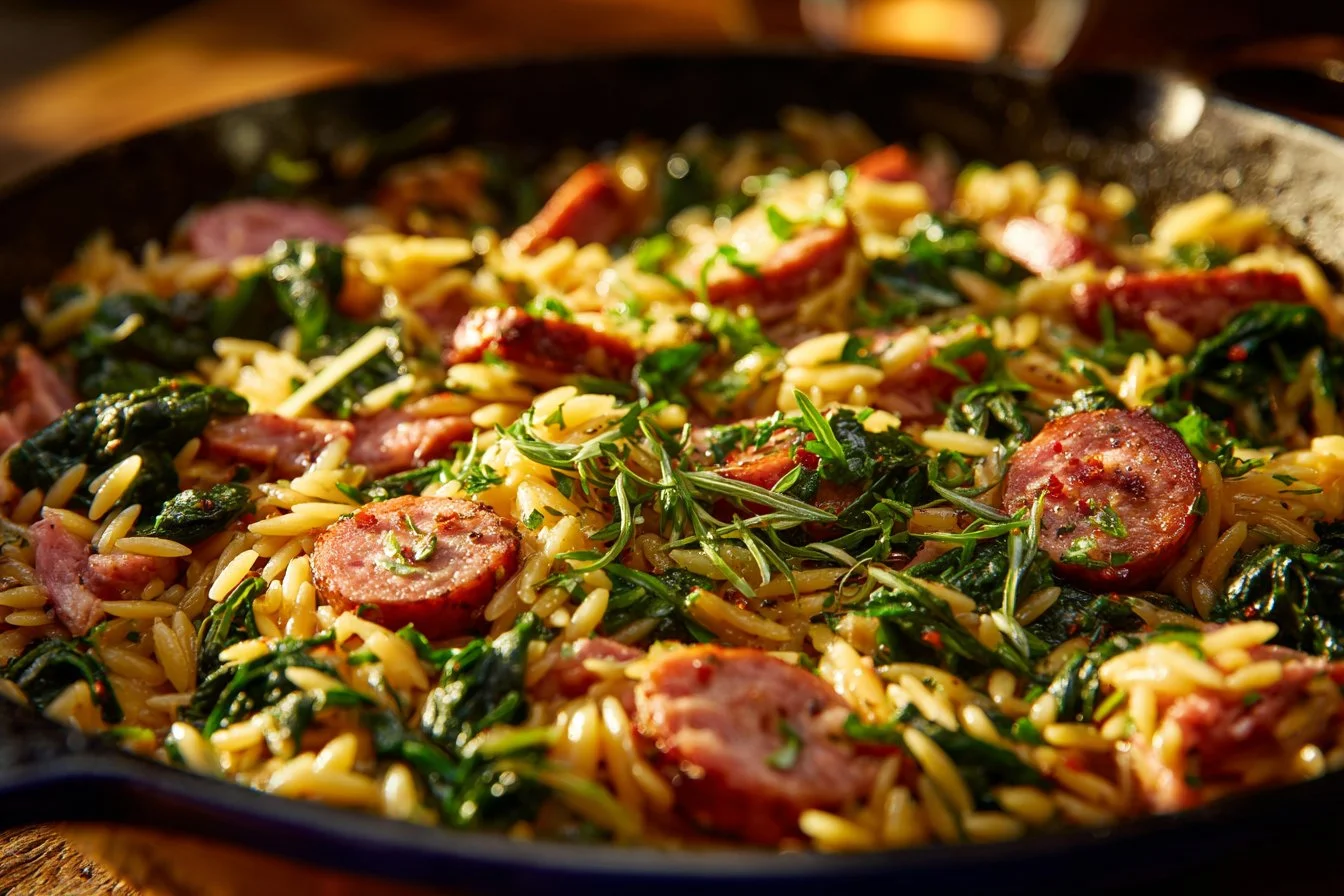 Creamy Chicken Sausage Orzo Skillet