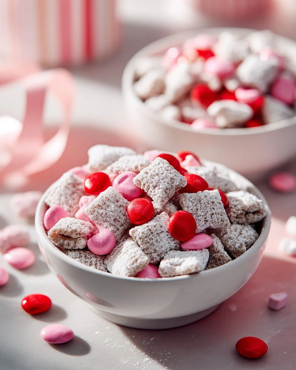 Cupid Puppy Chow is the perfect sweet treat to celebrate love and friendship. This festive snack is not only delicious but also easy to make. It combines crunchy rice Chex cereal, creamy peanut butter, and rich chocolate, all coated in a sweet layer of powdered sugar. Whether you’re sharing with friends or enjoying it yourself, this recipe is sure to bring a smile to everyone’s face.