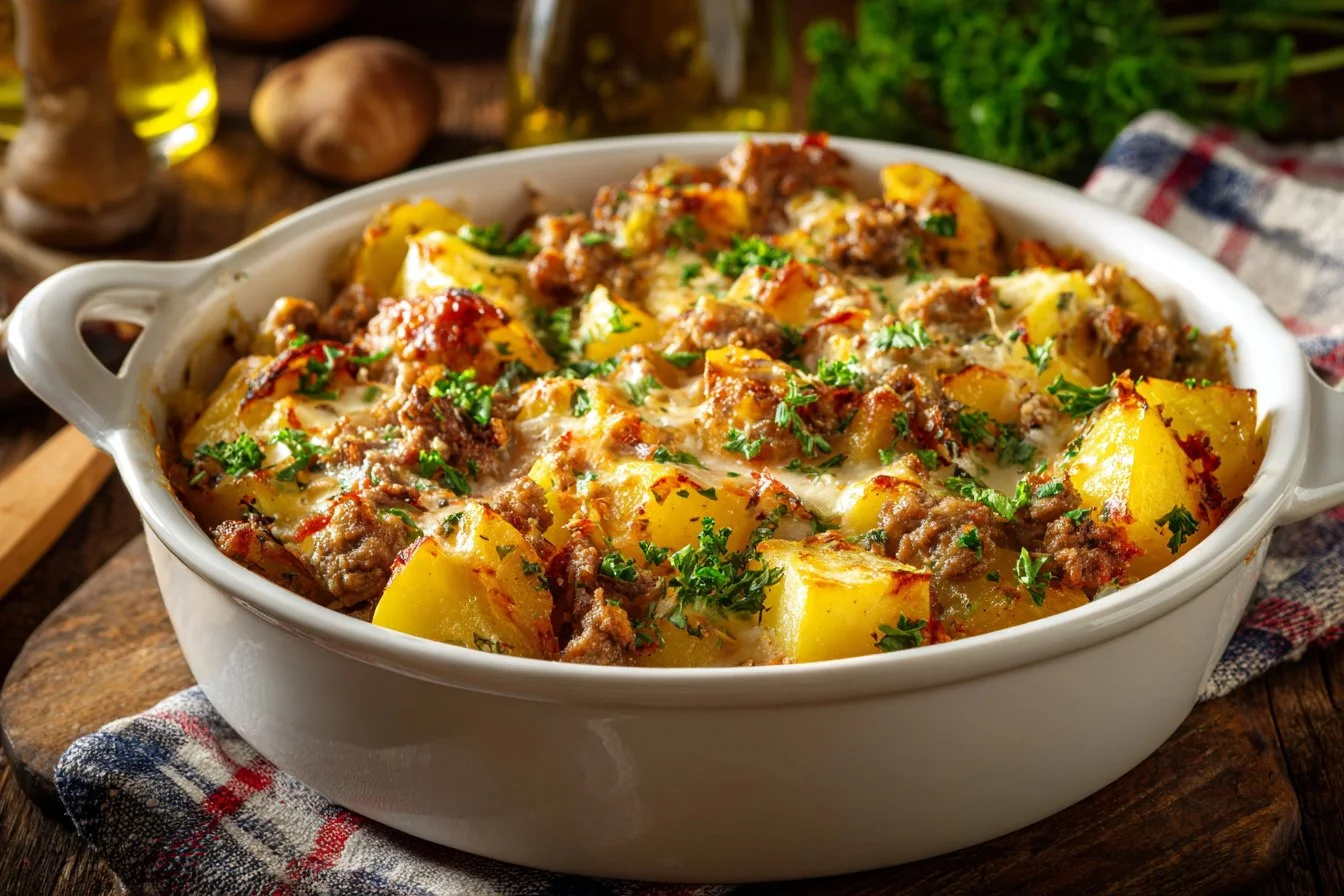 A hearty and comforting dish perfect for family dinners, combining simple ingredients into a filling casserole.