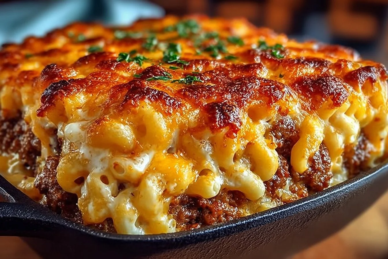 A delightful twist on two classic comfort foods: meatloaf and mac and cheese. Perfect for family dinners, this hearty casserole combines seasoned beef with creamy, cheesy pasta for a satisfying meal.