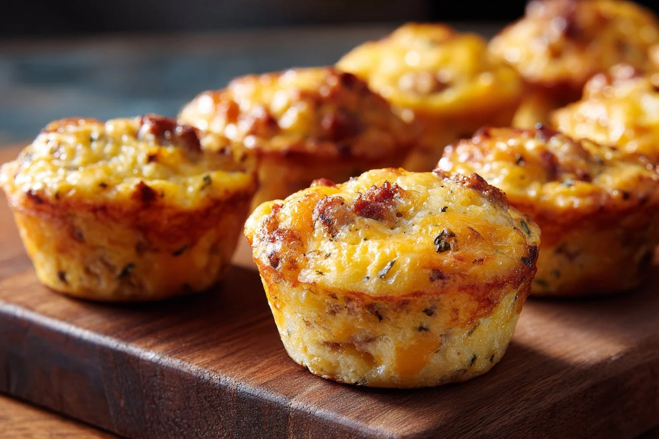 Start your day with these warm, fluffy mini egg muffins packed with savory sausage and gooey cheese, perfect for busy mornings.