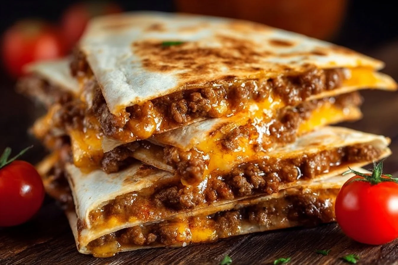 Quick and easy quesadillas filled with seasoned ground beef and melted cheese, perfect for family gatherings or cozy dinners.