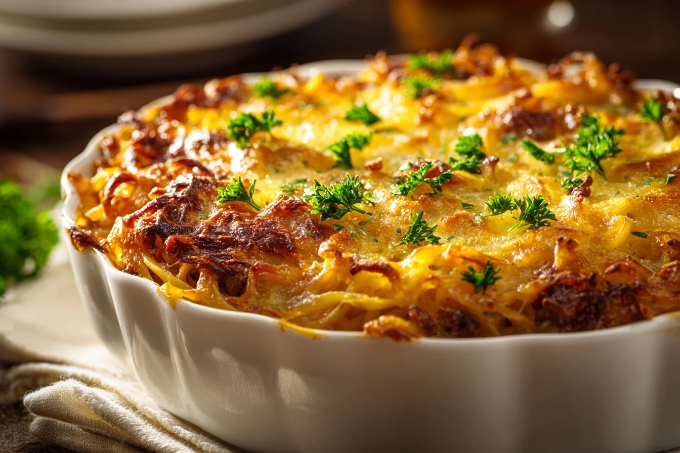 Pair it with a fresh green salad dressed simply with olive oil and vinegar, or warm bread rolls to complement the richness of the casserole. For drinks, a glass of iced tea or a light white wine could balance out the flavors. If you’re serving this dish for a special occasion, consider plating the casserole in individual portions for an elegant touch.