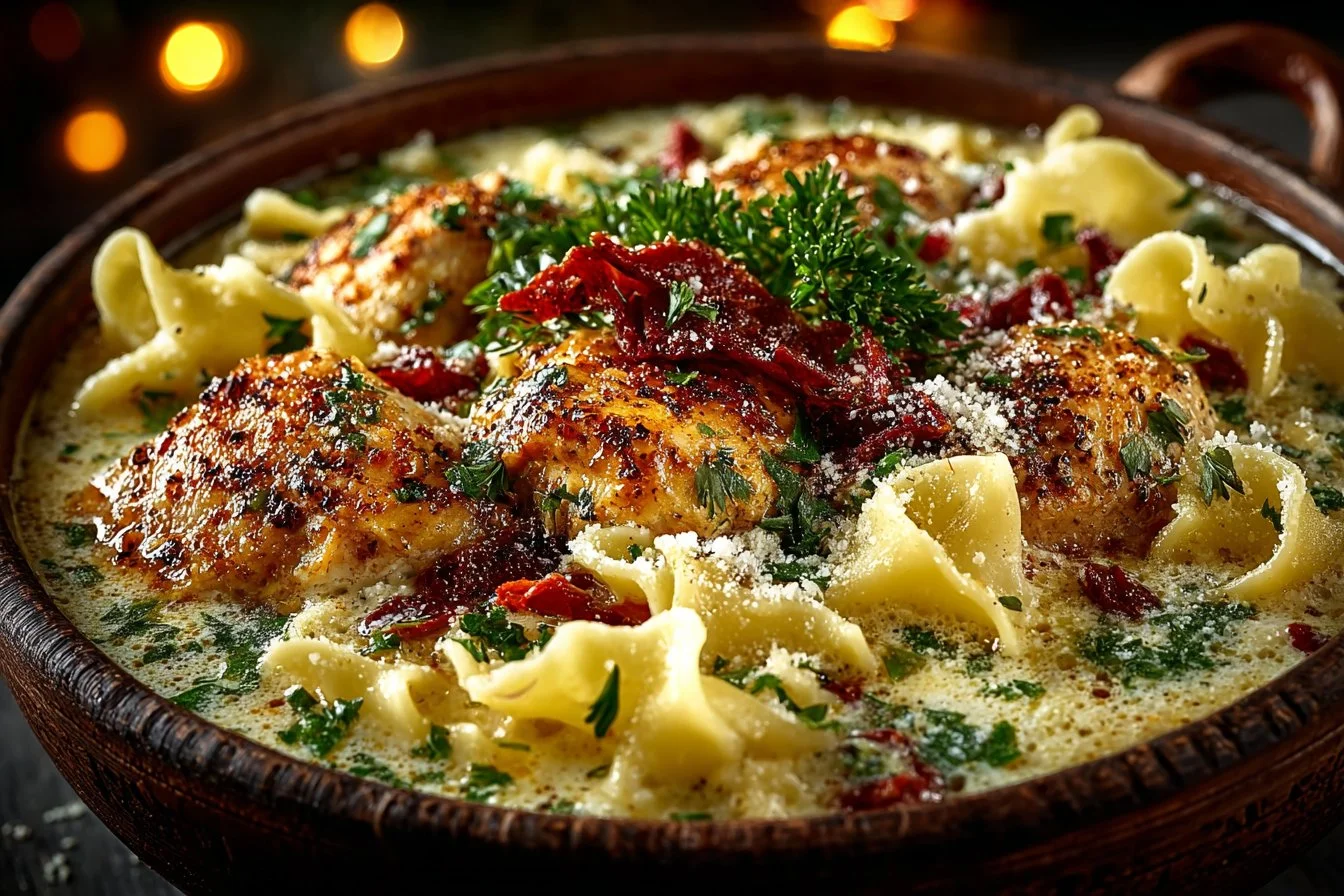 3. Stir in the chicken broth, heavy cream, broken lasagna noodles, Italian seasoning, salt, and pepper. Bring to a boil, then reduce heat and simmer for about 15-20 minutes, or until the noodles are tender.