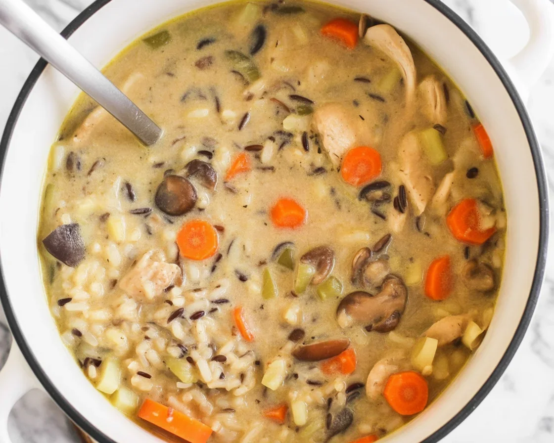 A warm, comforting bowl of chicken and wild rice soup that’s wholesome, low in calories, and perfect for chilly nights.